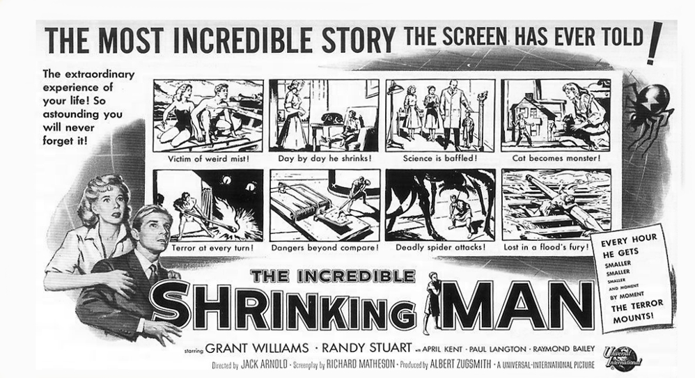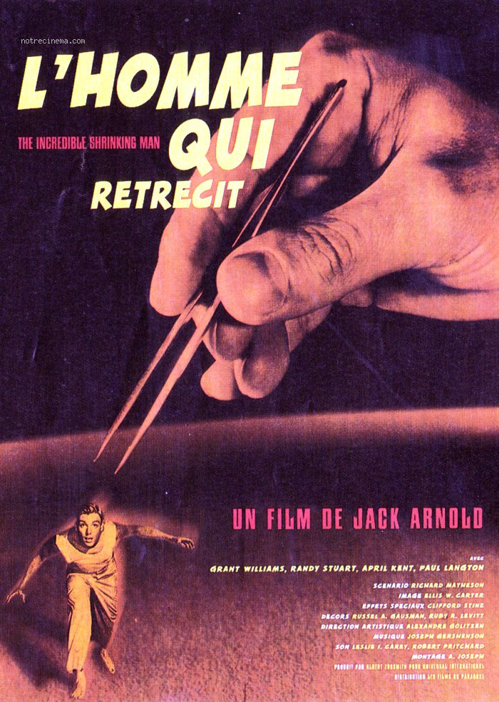 The Incredible Shrinking Man (aka l’Homme qui rétrécit) est l’un des films phares du cinéma de science-fiction des années cinquante. À l’époque, le genre, encore balbutiant, consiste surtout en des séries-B de facture relativement modeste. La plupart des films produit sont centré soit autour de visiteurs extra-terrestres aux intentions généralement belliqueuses (The Thing, War of The Worlds), soit de monstres transformés par la science atomique (Them, Godzilla).