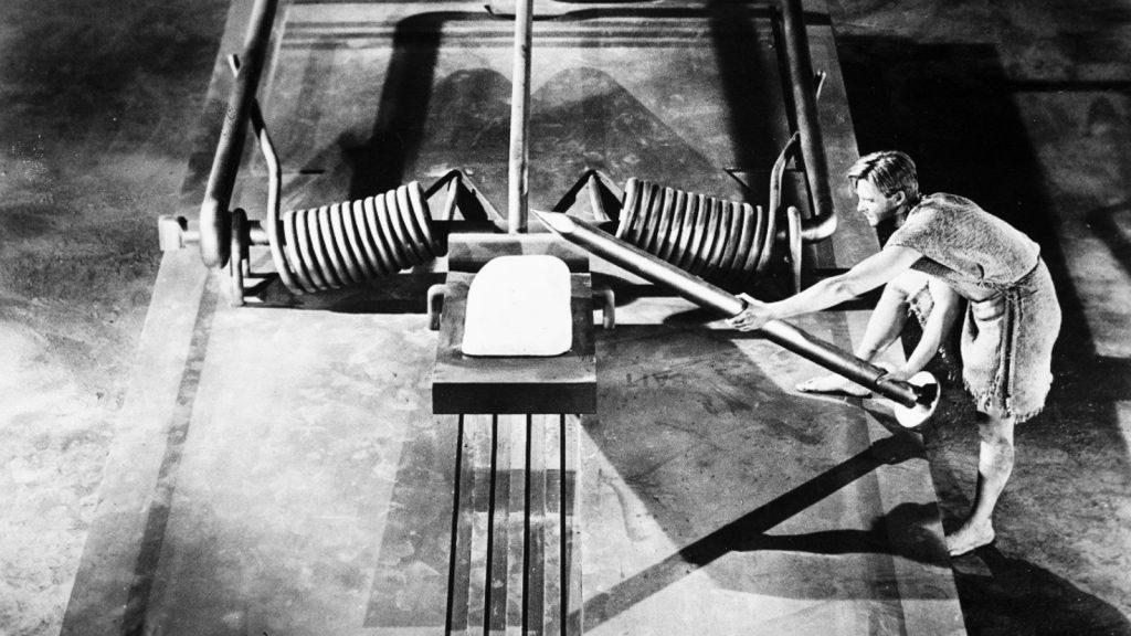 L’Homme qui rétrécit présente donc un protagoniste qui affecté par une brume radioactive sortie de nulle part commence à rétrécir. De 1,80 mètre il passe graduellement de la taille d’un enfant puis d’une petite poupée et enfin d’un insecte. Finalement il se retrouve coincé dans le sous-sol de sa propre demeure qui de son point de vue a la dimension d’une immense caverne dans lequel rôde une terrifiante araignée.