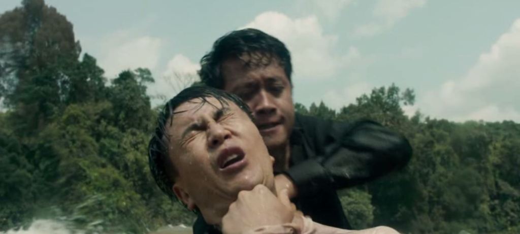 Le grand moment d’action du film survient sur le site très scénique d’une chute ou la proie est débusquée par un rabatteur. Ce dernier est incarné par Dara Our un des protagonistes policiers de Jailbreak et un expert dans l’art martial cambodgien du bokator. Il ne s’agit pas toutefois d’un duel de virtuosité physique, mais d’un corps à corps des plus âpre