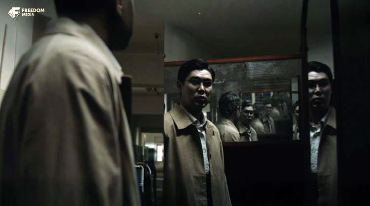 Scary Tales combine astucieusement le film noir avec le folk-horror dans lequel l’influence des thèmes et du style du J Horror se fait bien sentir tout comme celle des séries cultes X Files : Aux Frontières du réel et peut-être même the Kingdom de Lars Von tries. Le film repose sur la création d’une atmosphère glauque et sinistre prégnante marquée par l’apparition de créatures ou d’esprits surnaturels qui ne sont vus le plus souvent que par un seul personnage : la voyante. Le malaise est également suscité par la façon quasi caricaturale dont les collègues du protagoniste policier sont dépeints dans leurs attitudes et agissements. Ce sont dans ces représentations que le film trouve une bonne partie de son humour à la fois noir, absurde, voir même grotesquement saugrenue par moment qui en contrastant avec l’ambiance ténébreuse sinistre du film en accentue son étrangeté.