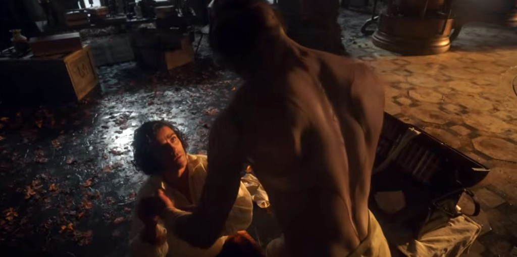 D’autres modifications par contre sont plus problématiques. Ainsi Victor Frankenstein lui-même n’est plus le jeune savant idéaliste, mais fragile de l’œuvre de Shelley. Son interprète Oscar Isaac en fait à la place un mégalomane narcissique égocentrique, une sorte de mélange entre le poète romantique Lord Byron et les nababs entrepreneurs contemporains toxique comme Elon Musk. C’est un changement tout à fait pertinent pour notre époque, mais comme Victor Frankenstein est la figure centrale pendant la moitié du récit, le film est quelque peu plombé par la présence de ce personnage certes tragique, mais également antipathique, positionné de manière (trop) évidente comme le véritable monstre du récit.