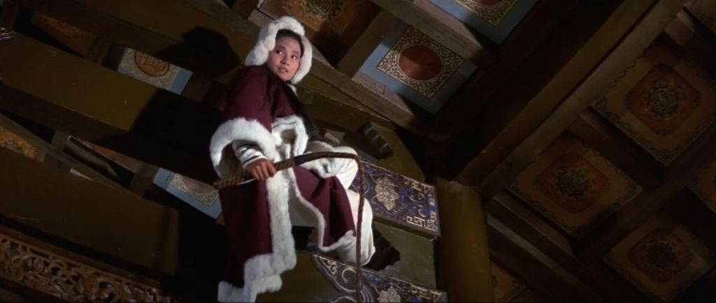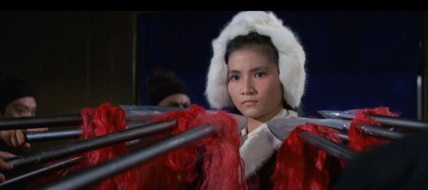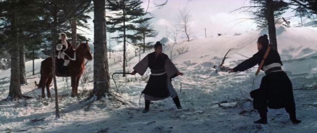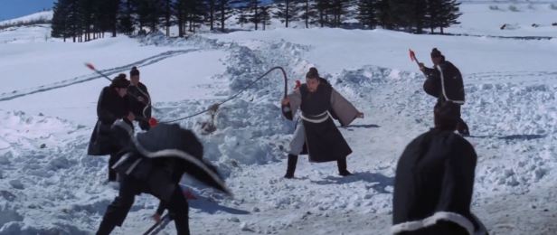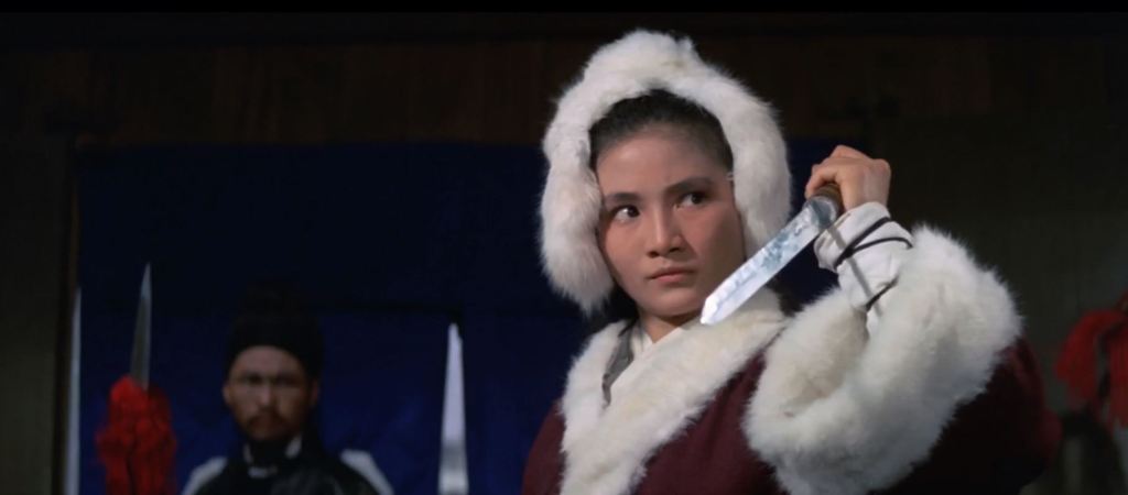 Sans être aussi excellent que l’Hirondelle d’or le premier et le plus reconnu des films wuxia de Cheng, l’Ombre du fouet datant de 1971 est l’un de ceux qui est à la fois le plus remplis d’action et le plus visuellement distinct. C’est qu’il se déroule dans un vaste no man’s land enneigé et que son héroïne de même que son maitre emploie le fouet comme arme.