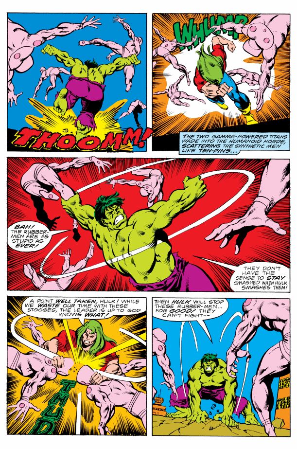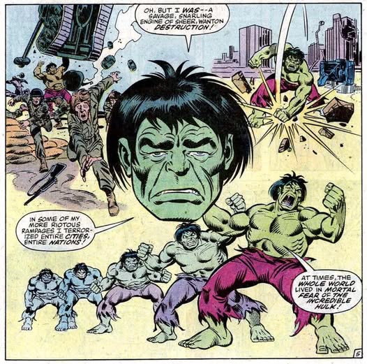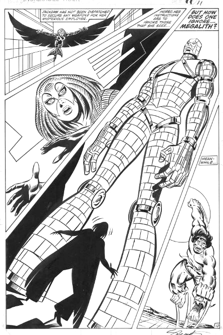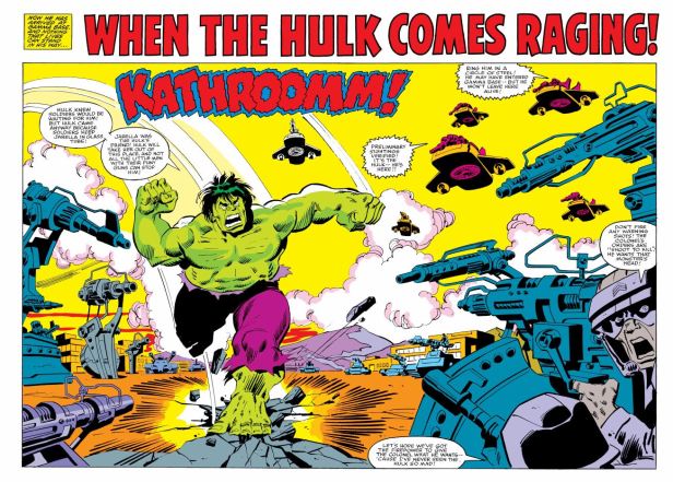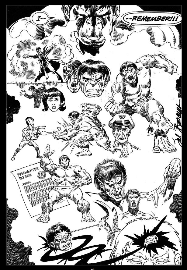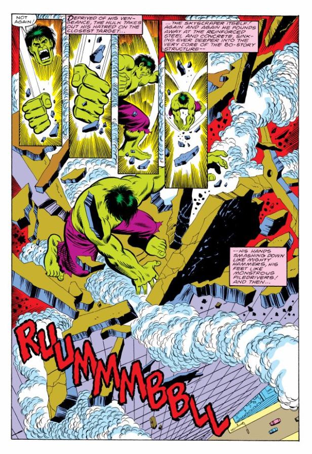 Parmi tous les superhéros qu’il aura dessinés Sal a reconnu que le Hulk restait son préféré tant pour son physique hors du commun que sa personnalité, Sal a dû également beaucoup apprécier la licence que lui donnait le Hulk de concevoir les scènes d’action et destructions parmi les plus titanesques jamais faites. La puissance brute du Hulk n’aura jamais aussi bien été définie qu’avec Sal Buscema.