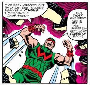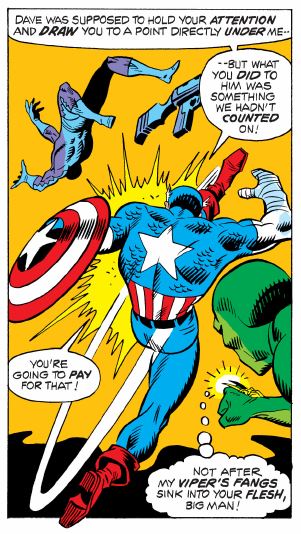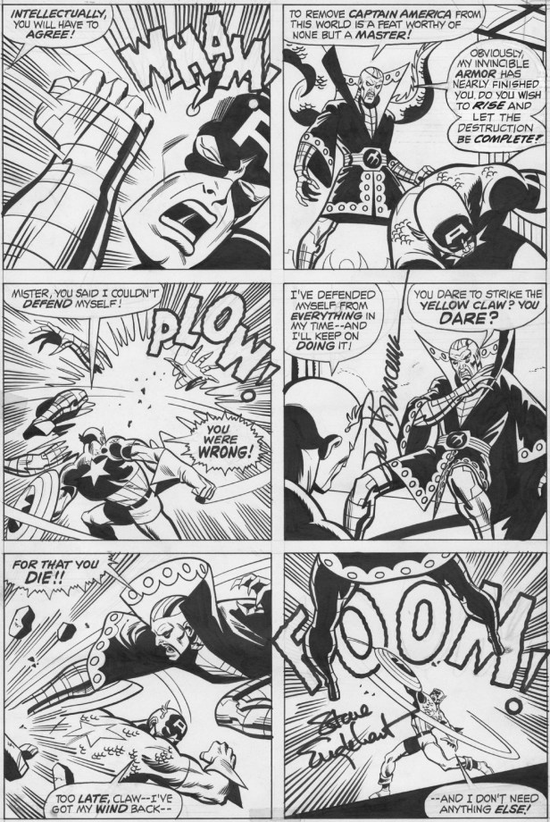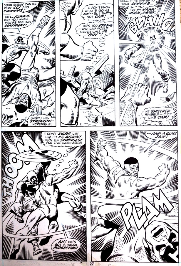 Au-delà de son immense talent pour les scènes d’action, Sal Buscema a aussi sut faire preuve d’excellence dans quantité de scènes dramatiques intense. Certes, la plupart du temps les traits faciaux des personnages et leurs expressions exagérés faisait surtout dans l’efficacité rudimentaire mais à l’occasion Sal a sut être capable de créer de grands moments crève-cœur comme le démontre la séquence diaporama ci dessous tirée de Captain America 237.