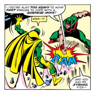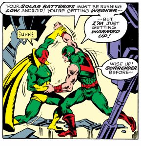 On peut avoir une excellente idée de la maitrise par Sal avec ce nouveau diaporama ci-dessous qui découpe un affrontement entre The Vision et Wonder-Man case par case.